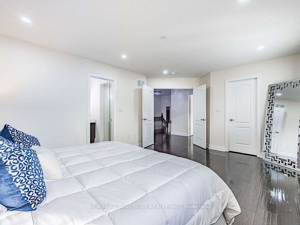 Welcome to this stunning and spacious 5-bedroom home located in a prestigious, family friendly neighborhood. Featuring a grand double door Entry, this home boasts elegant 2x4 tiles in the Kitchen, powder room and Entry hallway. Gleaming Hardwood house adding warmth and sophistication extend sophistication. The Main floor Includes a dedicated study with custom office cabinets perfect for working from home as well as cozy family room with built In Storage cabinets. The Chefs kitchen offers a functional layout and flows seamlessly into the backyard. Where you'll find a beautiful pergola on a concrete patio- ideal for relaxing Entertaining. The fully finished legal basement with separate entrance provides excellent income potential. Upgrades also include pot lights and poured concrete leading to basement entrance. Upstairs every bedroom from has access to ensuite bathroom. Located directly across from Kids Park, close to school and major Highways. A perfect family home with luxury Finishes. Don't miss this one.