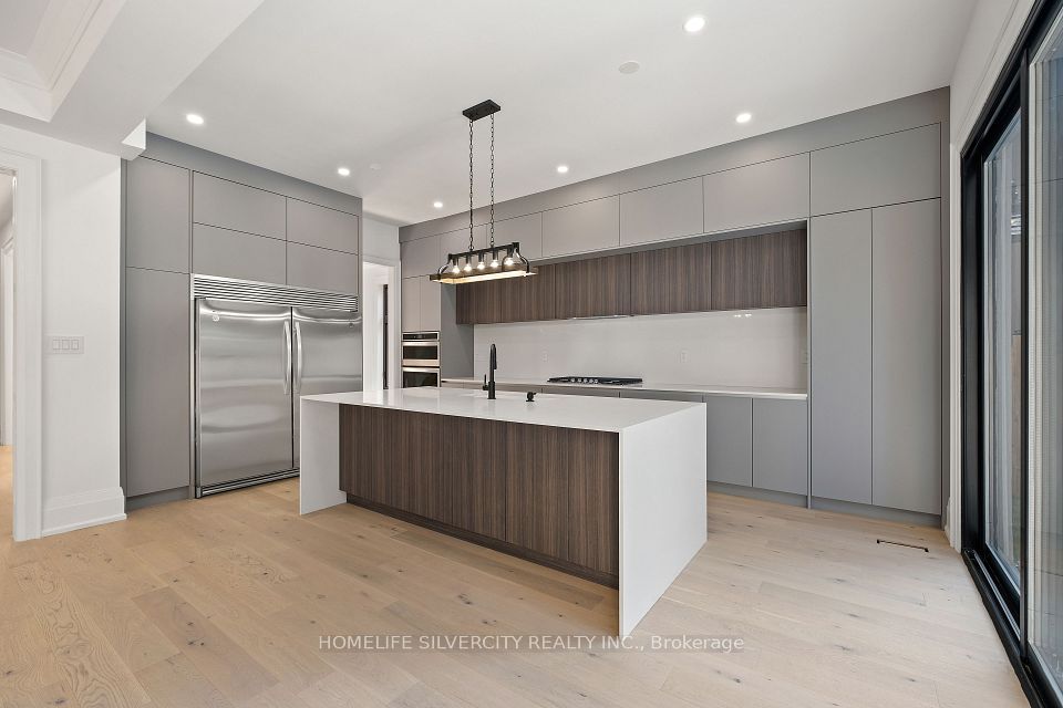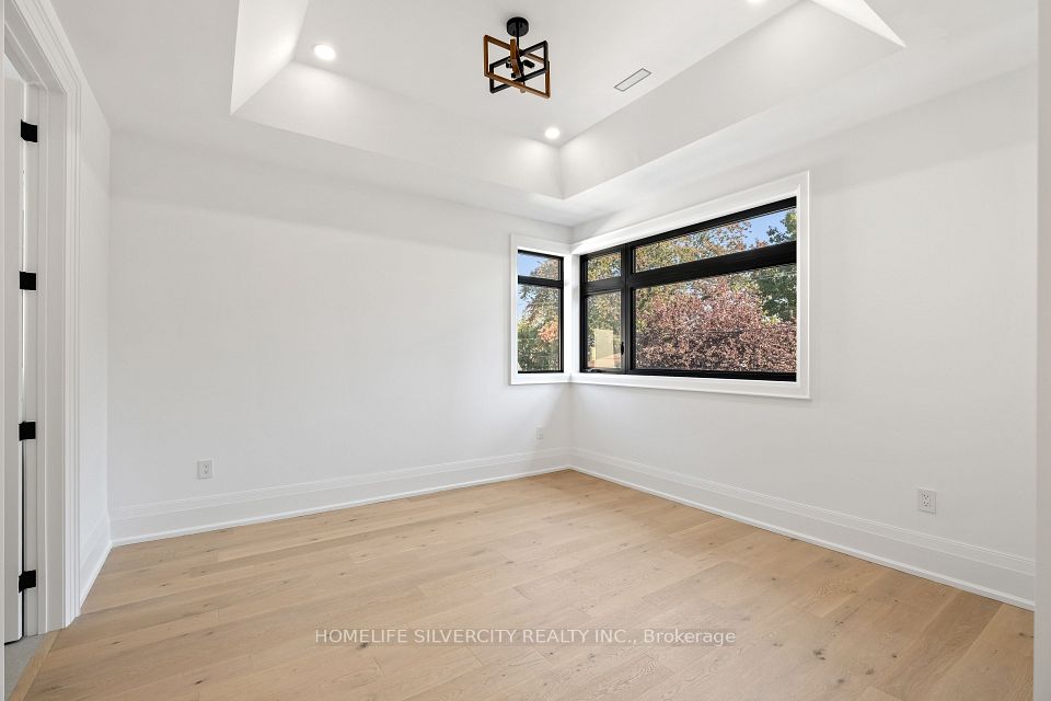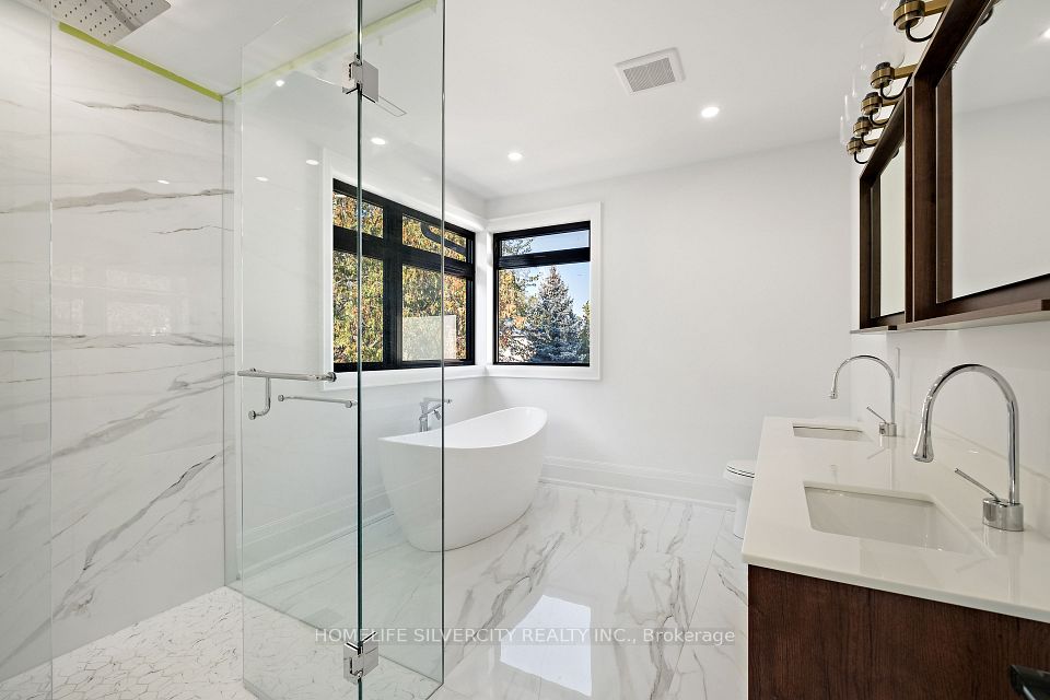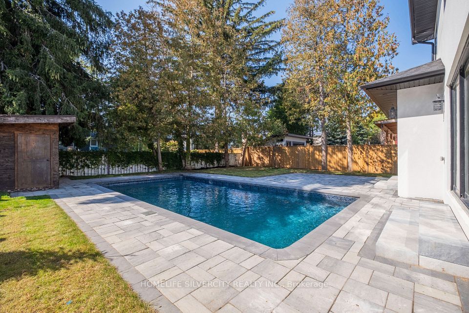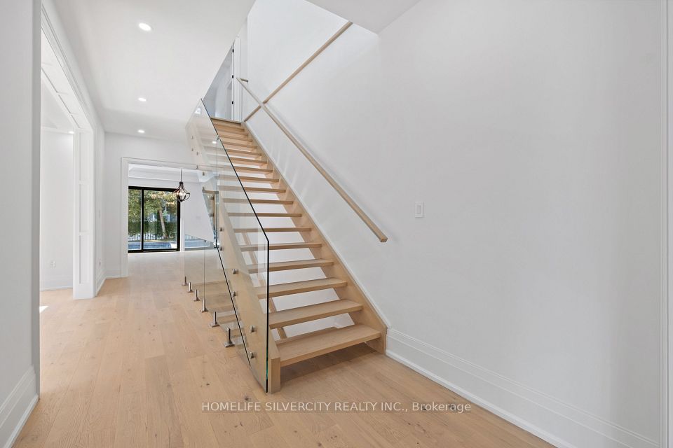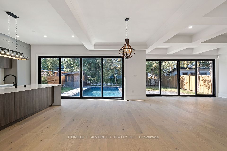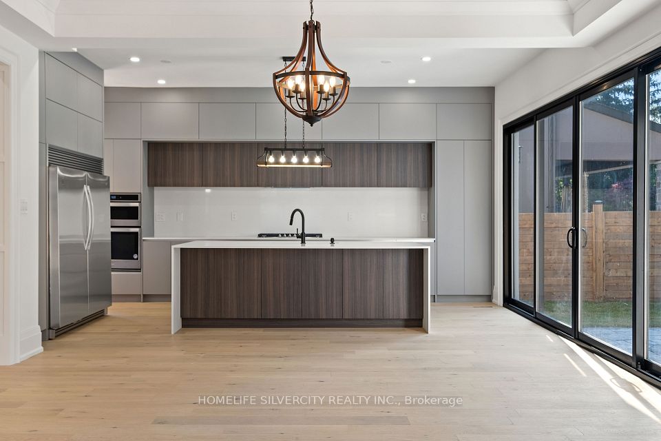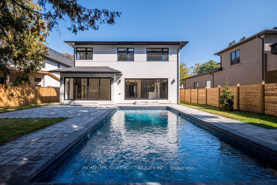 Modern custom built executive home nestled in the beautiful Mineola neighbourhood. Beautiful modern finishes with hardwood throughout the home leaving no expenses spared. This gorgeous homes boasts over 5800 sq ft of living space with an open concept design. Two skylights and over sized windows provide an abundance of natural light throughout the home. The bright open concept kitchen is equipped with an oversized island and stainless steel appliances. The custom oversized glass wall opens up both the kitchen and family room to your very own backyard oasis equipped with an in ground pool perfect for entertaining. The upper floor features five bedrooms located with a laundry for ease of use. The lower level provides an additional bedroom with a complete bath and a larger than life open concept rec room equipped with a wet bar.